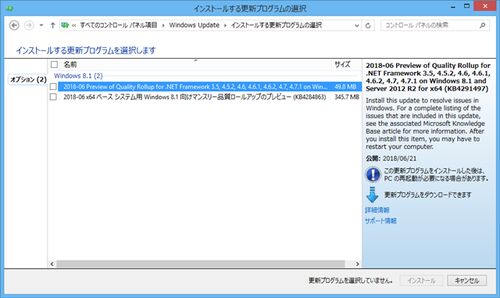 Windows 8.1 、 Windows 7 にそれぞれ KB4284863 と KB4284842 ( 更新プログラムのプレビュー ) が来ています。 .NET Framework のプレビュー KB4291497 と KB4291493 も来ています。 例によって非表示に設定します。 (図1) 2018年06月の Microsoft Update …