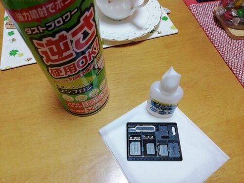 SIM カードの清掃 2020 出先で作業中、急にタブレットが再起動しました。 その後 SIM カードを認識しなくなってしまいました。 SIM カード差し直してもダメで、ちょっと焦りました。 帰宅後、SIM カードをプロピルアルコール清拭して、エアブロアーで吹いて…