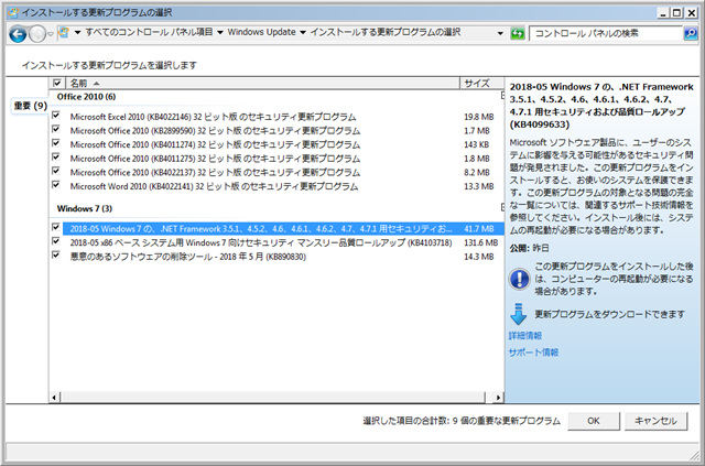 ※ 2018年05月の Microsoft Update (定例) 2018-05-02