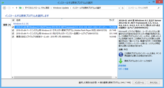 2018年05月の Microsoft Update 。(Windows 8.1)