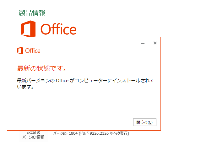 ※ Version 1804 (Build 9226.2126) / 16.0.9226.2126 。